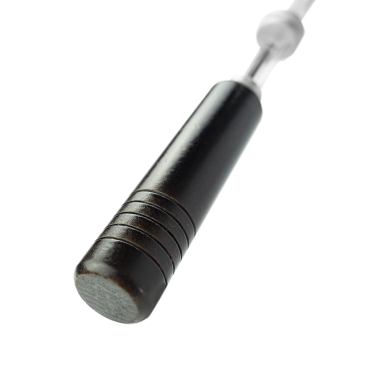 - Cabo de madeira com acabamento envernizado preto.