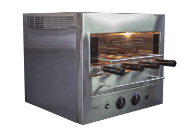 Sistema de rotação de espetos, permite assar de forma homogênea todos os tipos de carne, deixando seu alimento mais saboroso.