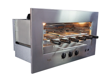 Sistema de rotação de espetos, permite assar de forma homogênea todos os tipos de carne, deixando seu alimento mais saboroso.