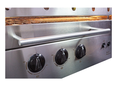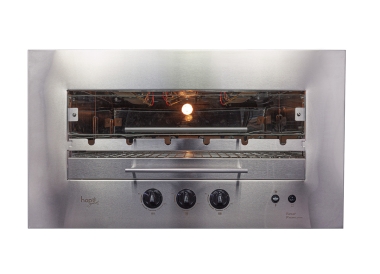 Possui grelha em aço com acabamento cromado: gratine pizzas, carnes e outros alimentos.