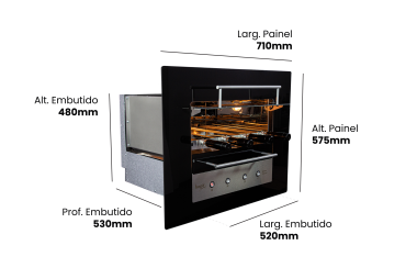 | Medida externa embutido: 420mm X 520mm X 530mm (A x L x P) |