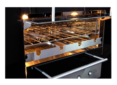 Sistema de rotação de espetos, permite assar de forma homogênea todos os tipos de carne, deixando seu alimento mais saboroso.