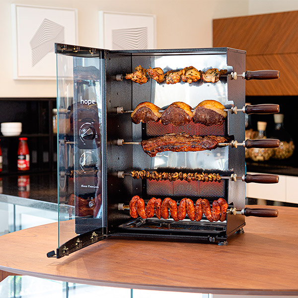 A Hope Gourmet oferece opções de churrasqueiras com mecanismo plug and play, que facilitam a instalação, além dos modelos com funcionamento a gás, que se destacam pela alta durabilidade e pelo sistema de segurança contra vazamento de gás. Algumas versões foram desenvolvidas especialmente para áreas litorâneas e contam com painel em vidro temperado, proporcionando charme e elegância aos ambientes, outras foram desenvolvidas para uso em bancadas que buscam facilitar ainda mais a instalação de nossas churrasqueiras nos lares brasileiros. Todos os assadores contam com sistema rotativo.